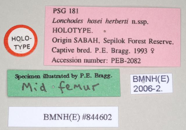 female, data labels of synonym Lonchodes hosei herberti (holotype)