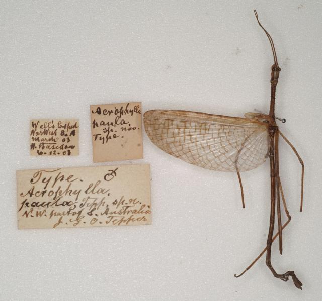 male, with data labels of synonym Acrophylla paula (holotype)