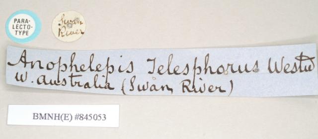 female, data labels of Anophelepis telesphorus (syntype)