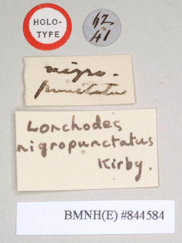 Lonchodes nigropunctatus female: data labels [circular label reversed] (holotype)