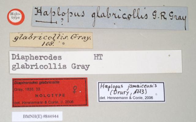 female of synonym Diapherodes glabricollis, data labels (holotype)