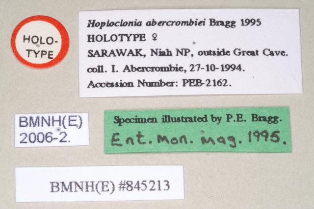 female data labels of Hoploclonia abercrombiei (holotype)