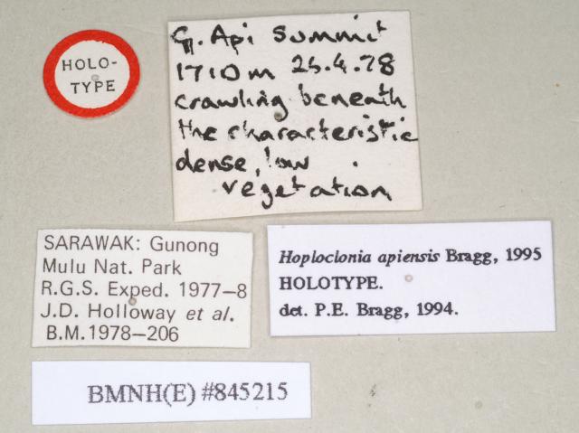 female of synonym Hoploclonia apiensis, data labels (holotype)