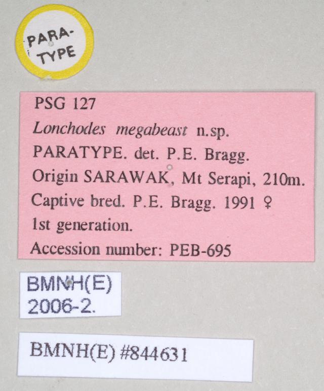 female of synonym Lonchodes megabeast, data labels (paratype)