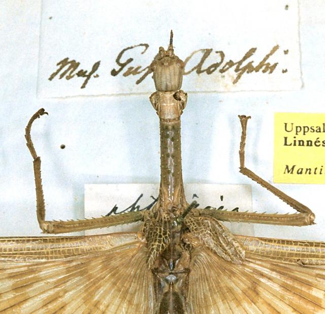 male: head and thorax, dorsal view of Gryllus (Mantis) gigas (paralectotype)