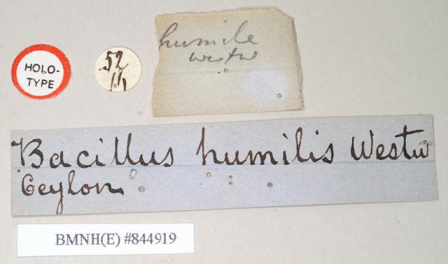 female, data labels [round label reversed] of Bacillus humilis (holotype)