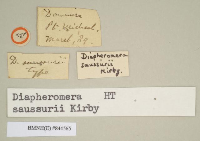 male, data labels of synonym Diapheromera saussurei (holotype)