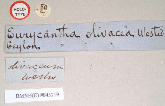 male, data labels [round label reversed] of Eurycantha olivacea (holotype)