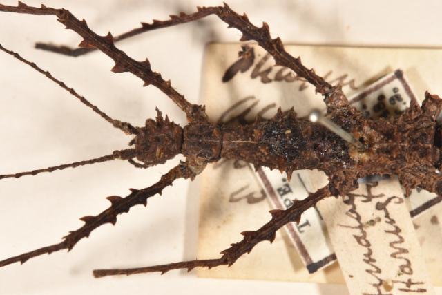 female of Phasma (Acanthoderus) bicoronata: head & thorax, dorsal view (holotype)