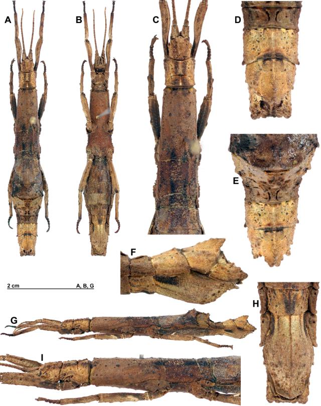 view. F, terminalia, lateral view. G, habitus lateral view. H, terminalia, ventral view. I, head and thorax, lateral