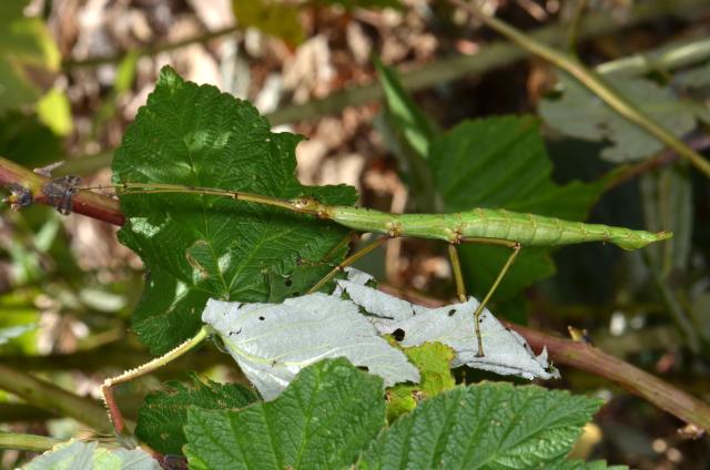 female Acanthoxyla prasina [type species], in nature. New Zealand: Otaihanga, 12 February 2015