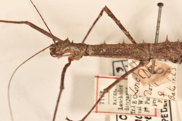 female: head & thorax, lateral view of Lonchodes doreyanus (syntype)
