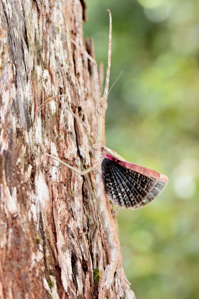 female (holotype) in nature startle display, Queensland, Springbrook, Apple Tree Park, 08 February 2016